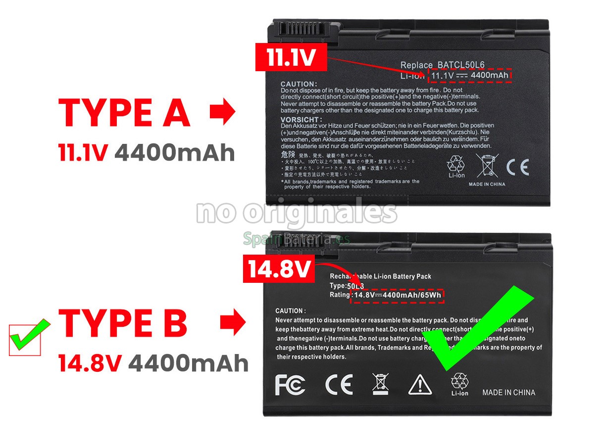 Por favor, compruebe el modelo y la forma de su batería original Acer Q20156. Asegúrese de que obtenga la batería correcta.