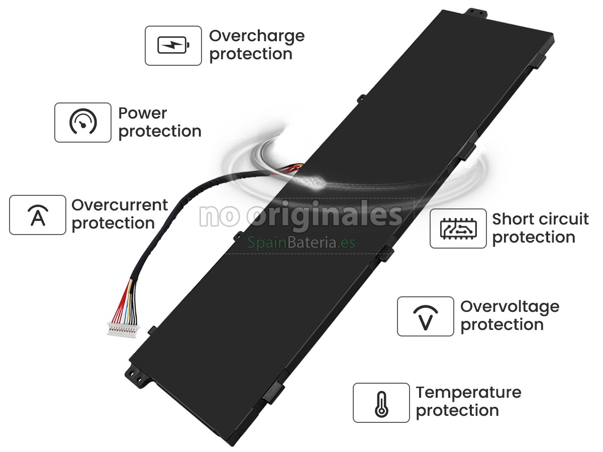 Cada batería contiene Funciones de Múltiples Protecciones Incorporadas para una Máxima Seguridad.
