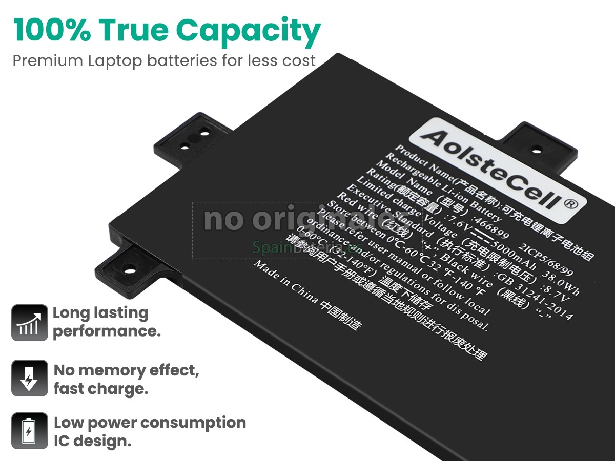 Tenemos requisitos estrictos sobre el rendimiento y la seguridad del producto. La batería para ordenador portátil AolsteCell 466899 tiene que aprobar con una serie de rigurosas inspecciones de calidad y pruebas de seguridad. Además, nuestra batería del portátil AolsteCell 466899 se vende directamente en SpainBateria.es, entonces el precio es aproximadamente 20-50% más bajo que el de otros intermediarios y tiendas reales.