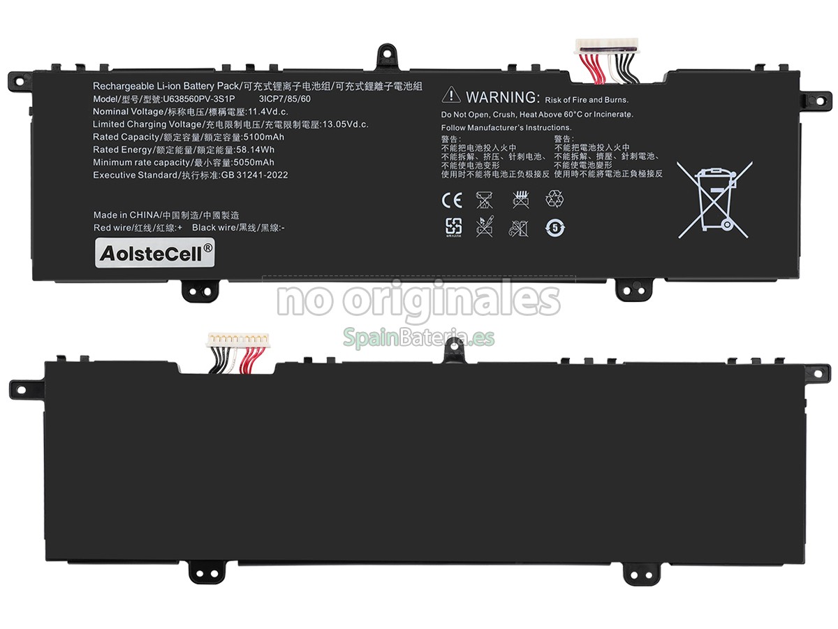 Por favor, compruebe el modelo y la forma de su batería original AolsteCell U638560PV-3S1P(3ICP7/65/80). Asegúrese de que obtenga la batería correcta.