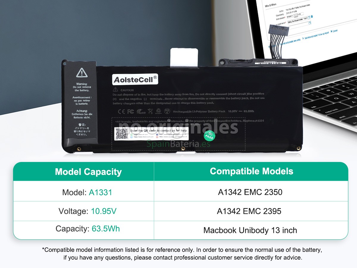 Note : 1. 10.95V and 11.1V are compatible, they are in common use. 2. This battery(A1331) only fits for Apple MacBook Pro 13 inch Unibody A1342(Late 2009,Mid 2010).3. Package Includes: 1 x Battery ,2 x Screwdrivers.