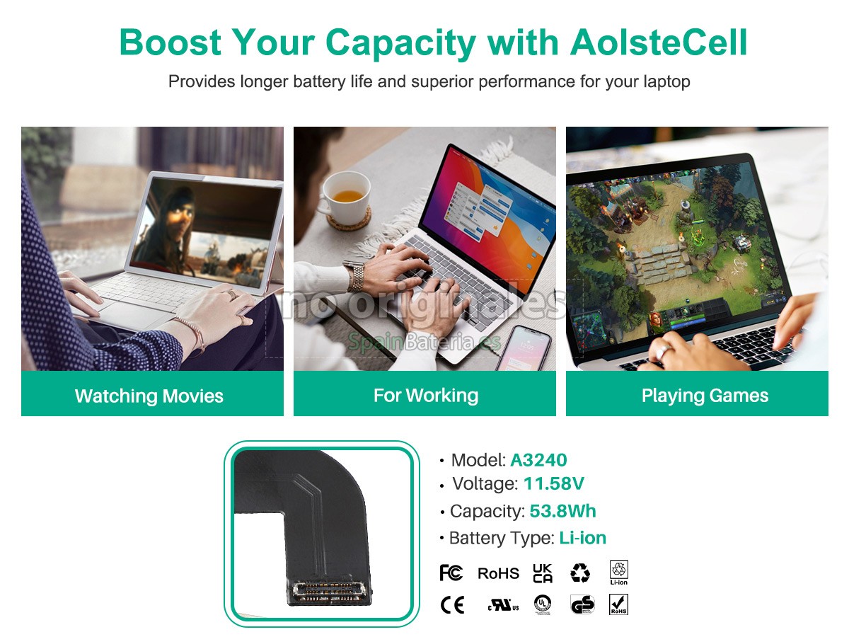 Tenemos requisitos estrictos sobre el rendimiento y la seguridad del producto. La batería para ordenador portátil Apple MC6U4LL/A tiene que aprobar con una serie de rigurosas inspecciones de calidad y pruebas de seguridad. Además, nuestra batería del portátil Apple MC6U4LL/A se vende directamente en SpainBateria.es, entonces el precio es aproximadamente 20-50% más bajo que el de otros intermediarios y tiendas reales.