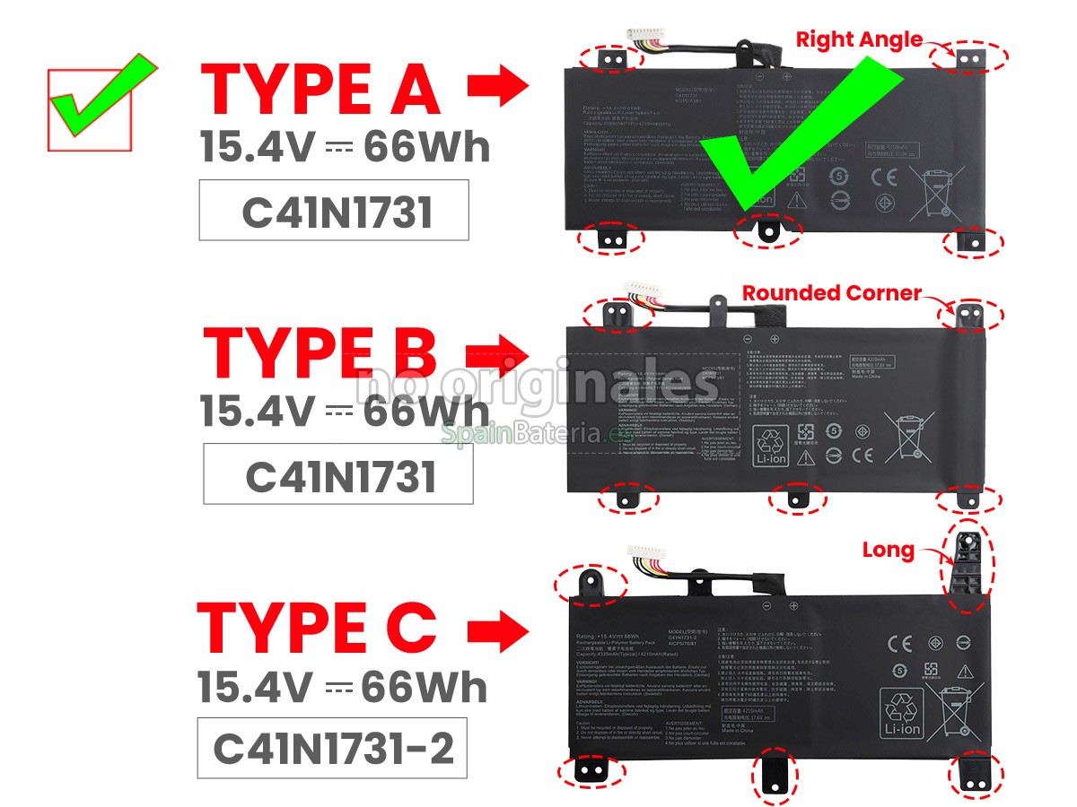 Por favor, compruebe el modelo y la forma de su batería original Asus 0B200-02940000. Asegúrese de que obtenga la batería correcta.