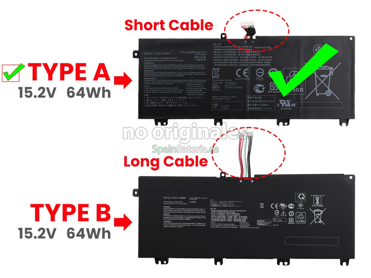 La larga duración de la batería Asus B41N1711 contiene células de batería de grado A para garantizar una mayor duración de la batería y más ciclos de carga. Entrega rápida, devoluciones fáciles y 100% de reembolso por 30 días. This battery's connector is longer, before placing an order please check your old battery first.
