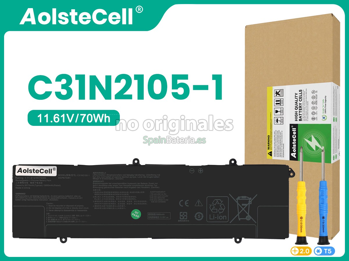 1. 100% OEM compatible con la batería Asus C31N2105-1 original.