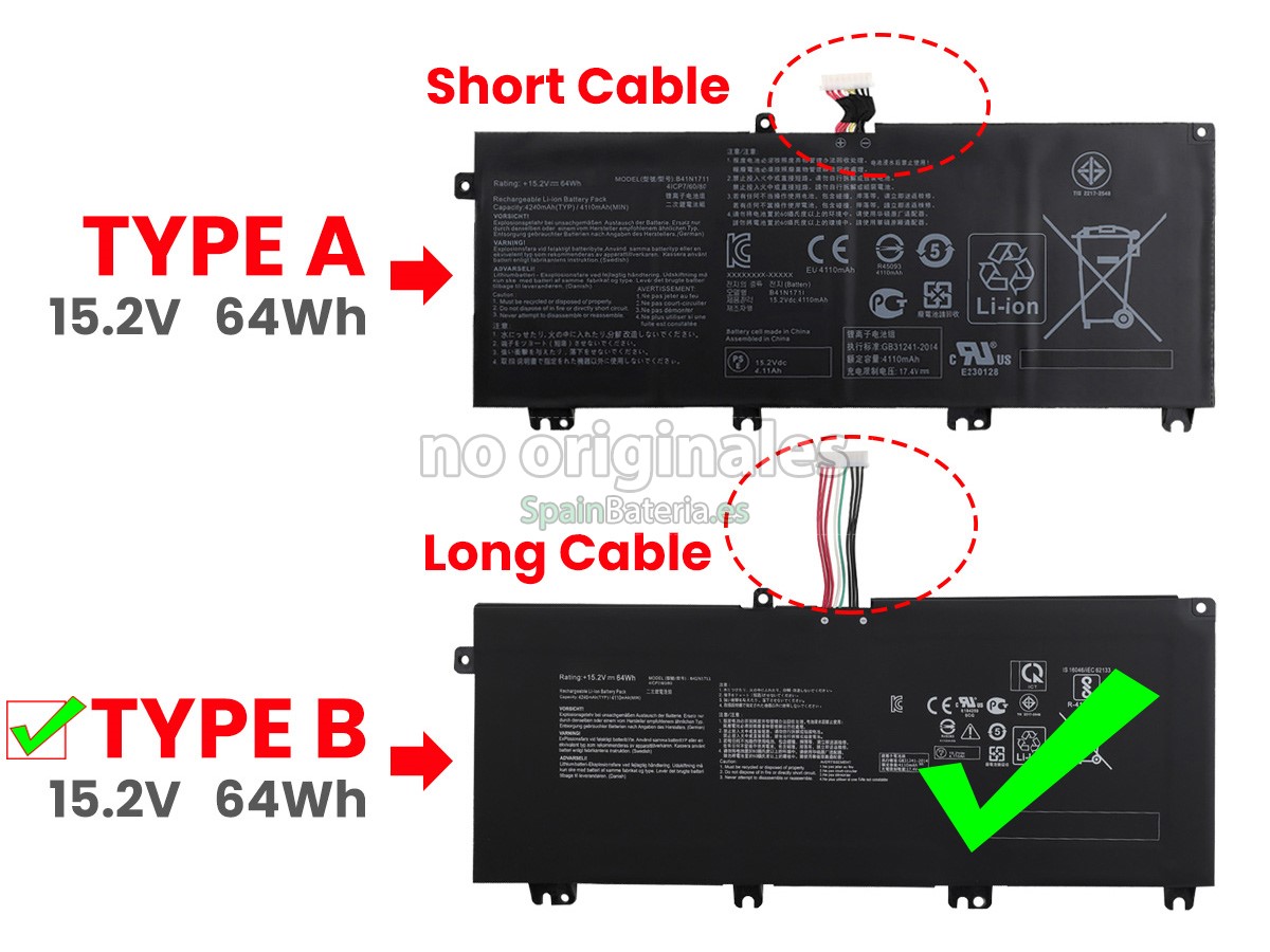 Por favor, compruebe el modelo y la forma de su batería original Asus FX705DD. Asegúrese de que obtenga la batería correcta.