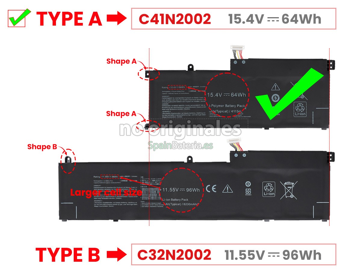 Por favor, compruebe el modelo y la forma de su batería original Asus UX535LH. Asegúrese de que obtenga la batería correcta.