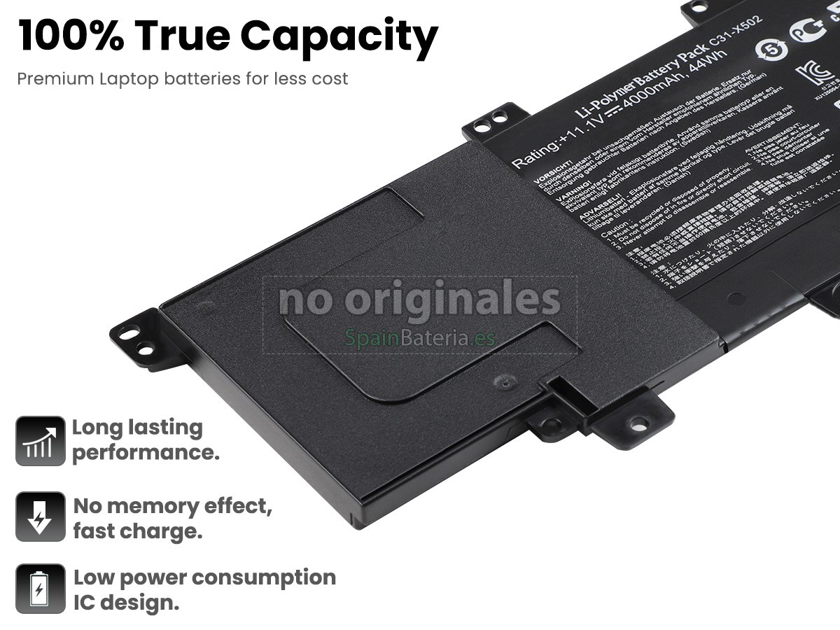 La larga duración de la batería Asus VivoBook X502 contiene células de batería de grado A para garantizar una mayor duración de la batería y más ciclos de carga. Entrega rápida, devoluciones fáciles y 100% de reembolso por 30 días. This battery is not compatible with the battery voltage 7.4V and 7.2V.