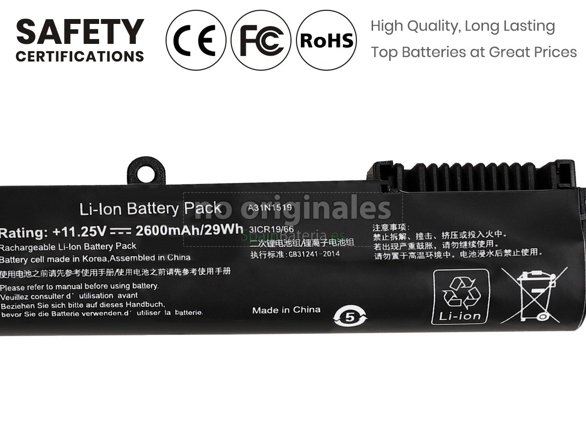 Batería de repuesto Asus X540LJ-3G de larga duración, ¡cómprelo con confianza!