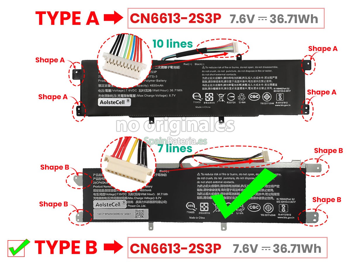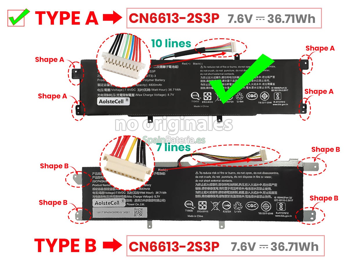 Por favor, compruebe el modelo y la forma de su batería original Avita NS14A6. Asegúrese de que obtenga la batería correcta.