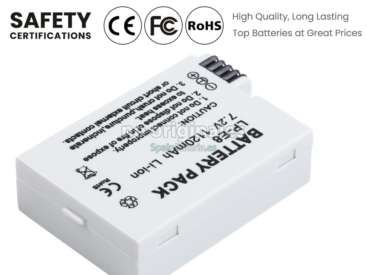 Tenemos requisitos estrictos sobre el rendimiento y la seguridad del producto. La batería para Canon 4461B001 tiene que aprobar con una serie de rigurosas inspecciones de calidad y pruebas de seguridad. Además, nuestra batería del Canon 4461B001 se vende directamente en SpainBateria.es, entonces el precio es aproximadamente 20-50% más bajo que el de otros intermediarios y tiendas reales.