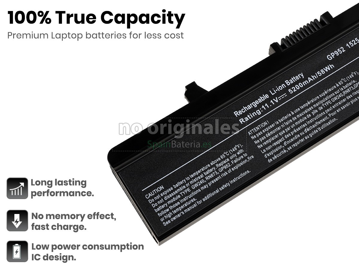 Por favor, compruebe el modelo y la forma de su batería original Dell 0RN873. Asegúrese de que obtenga la batería correcta.
