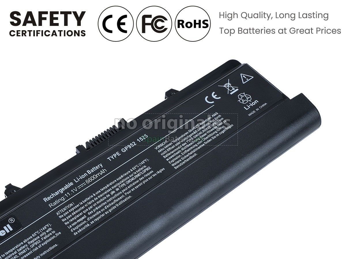 Tenemos requisitos estrictos sobre el rendimiento y la seguridad del producto. La batería para ordenador portátil Dell 0RN873 tiene que aprobar con una serie de rigurosas inspecciones de calidad y pruebas de seguridad. Además, nuestra batería del portátil Dell 0RN873 se vende directamente en SpainBateria.es, entonces el precio es aproximadamente 20-50% más bajo que el de otros intermediarios y tiendas reales.