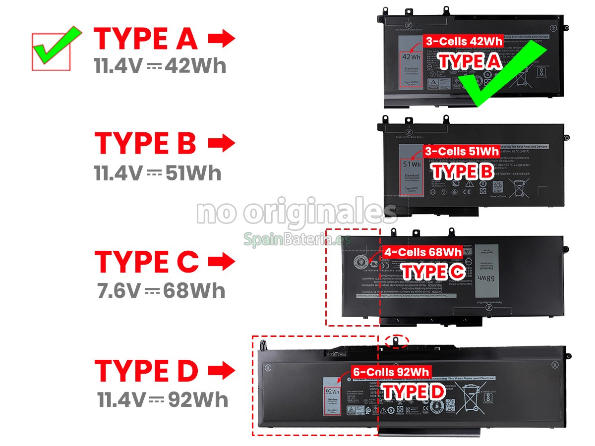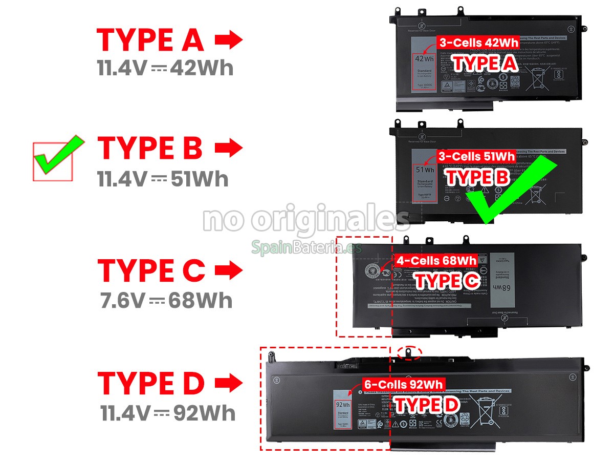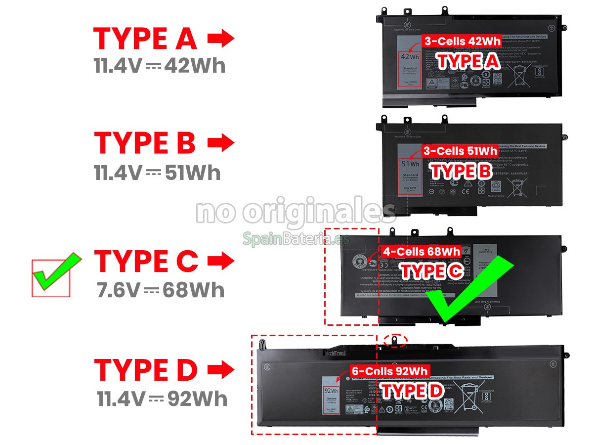 Por favor, compruebe el modelo y la forma de su batería original Dell C7J70. Asegúrese de que obtenga la batería correcta.