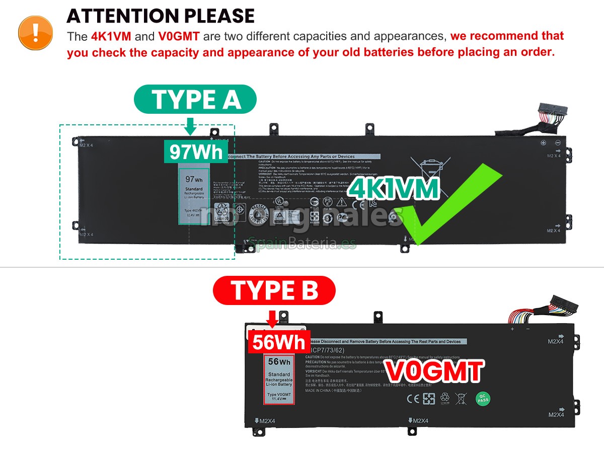 Por favor, compruebe el modelo y la forma de su batería original Dell NCC3D. Asegúrese de que obtenga la batería correcta.