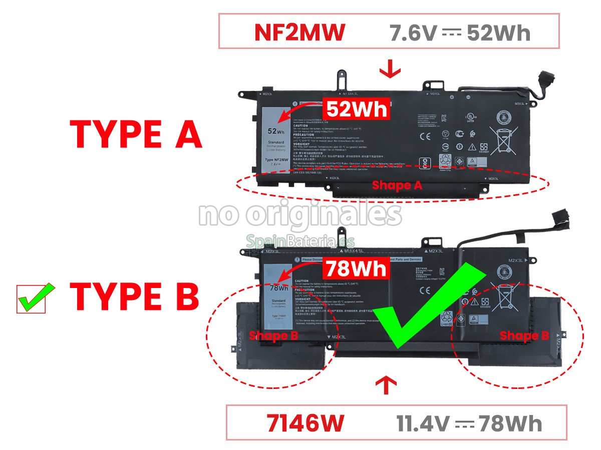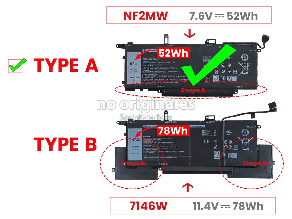 Por favor, compruebe el modelo y la forma de su batería original Dell WD8P8. Asegúrese de que obtenga la batería correcta.
