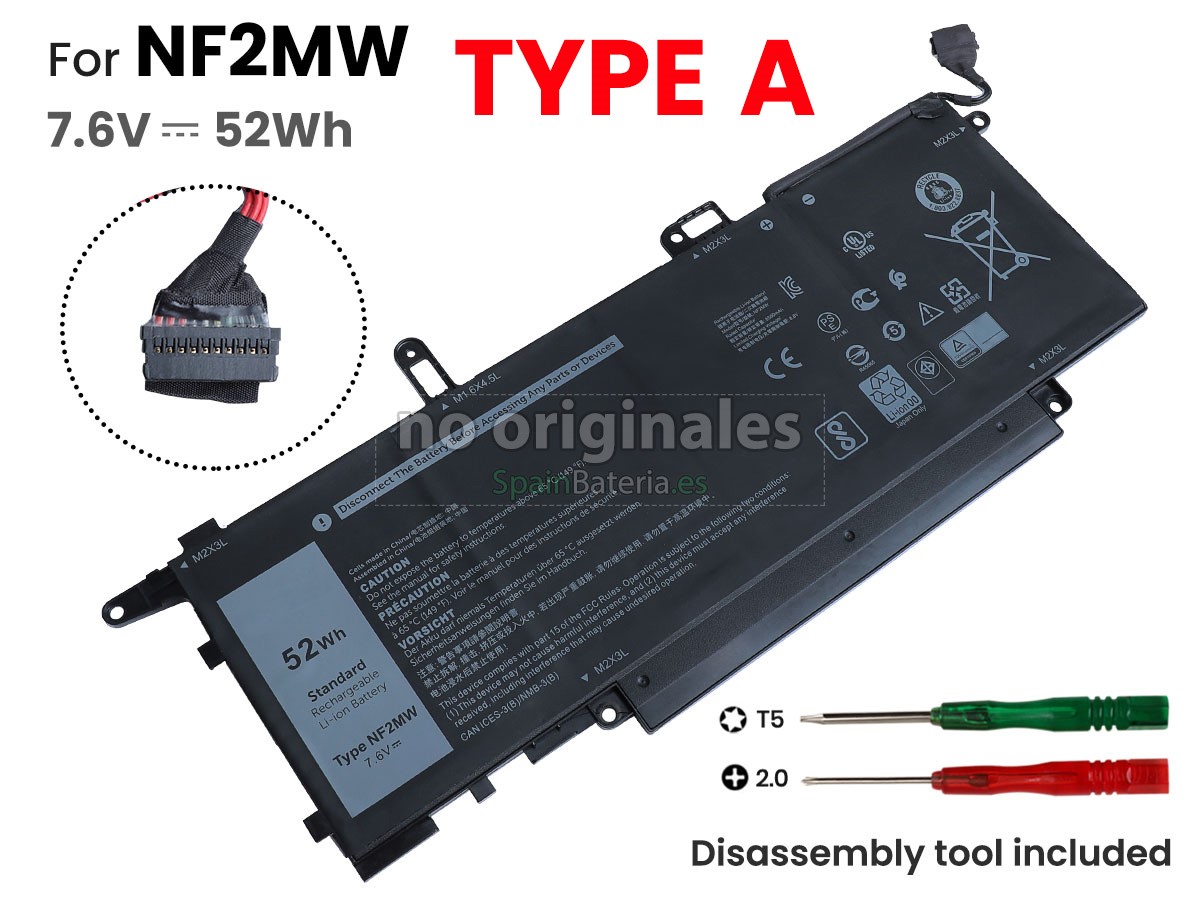 1. 100% OEM compatible con la batería Dell WD8P8 original.