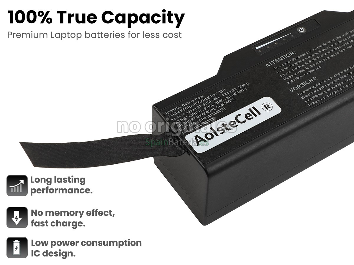 Tenemos requisitos estrictos sobre el rendimiento y la seguridad del producto. La batería para ordenador portátil Getac BP4S2P2050S tiene que aprobar con una serie de rigurosas inspecciones de calidad y pruebas de seguridad. Además, nuestra batería del portátil Getac BP4S2P2050S se vende directamente en SpainBateria.es, entonces el precio es aproximadamente 20-50% más bajo que el de otros intermediarios y tiendas reales.