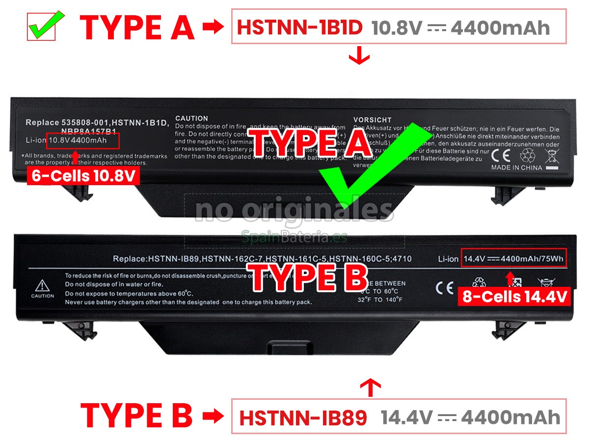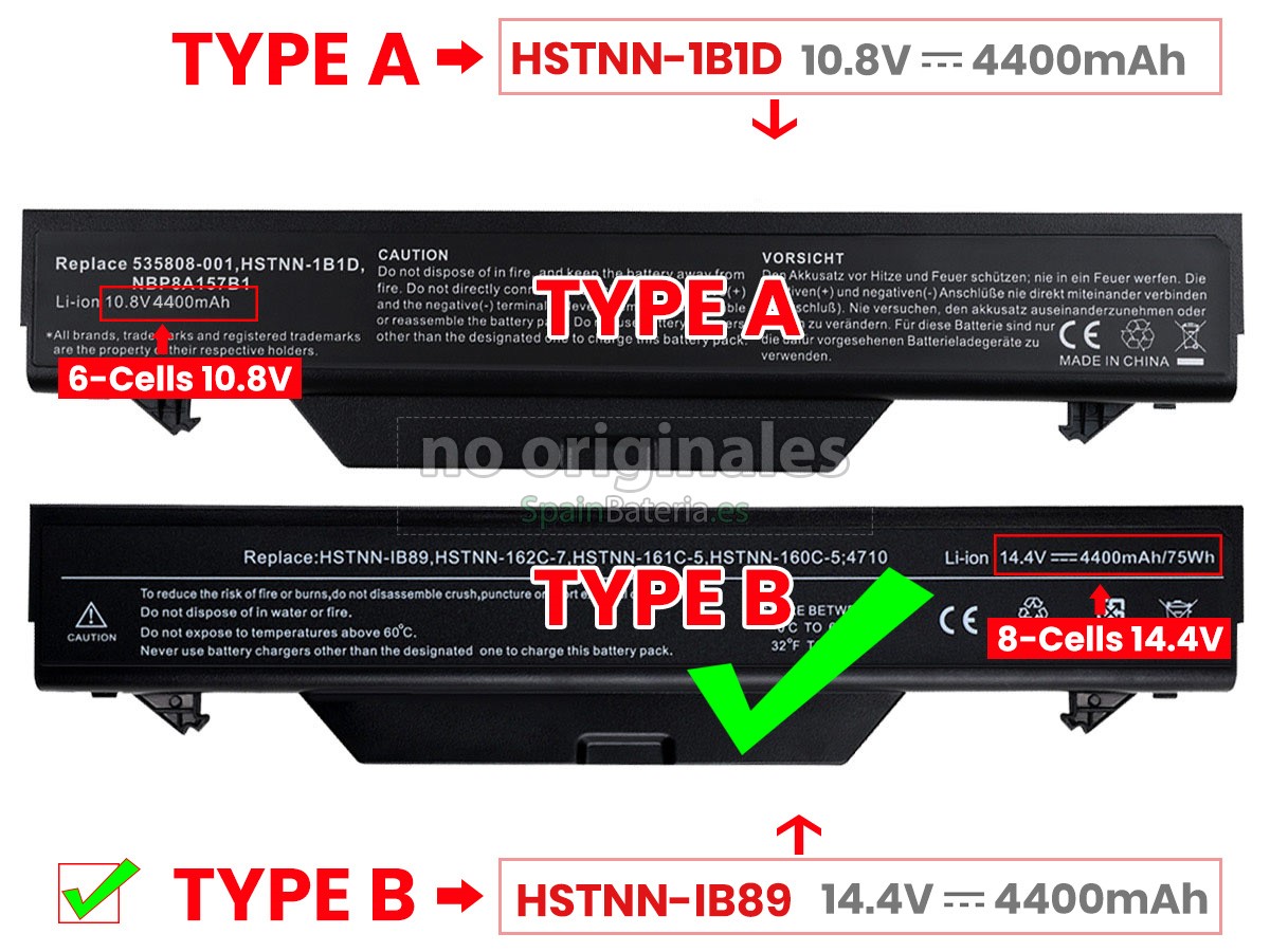 Por favor, compruebe el modelo y la forma de su batería original HP 513129-361. Asegúrese de que obtenga la batería correcta.