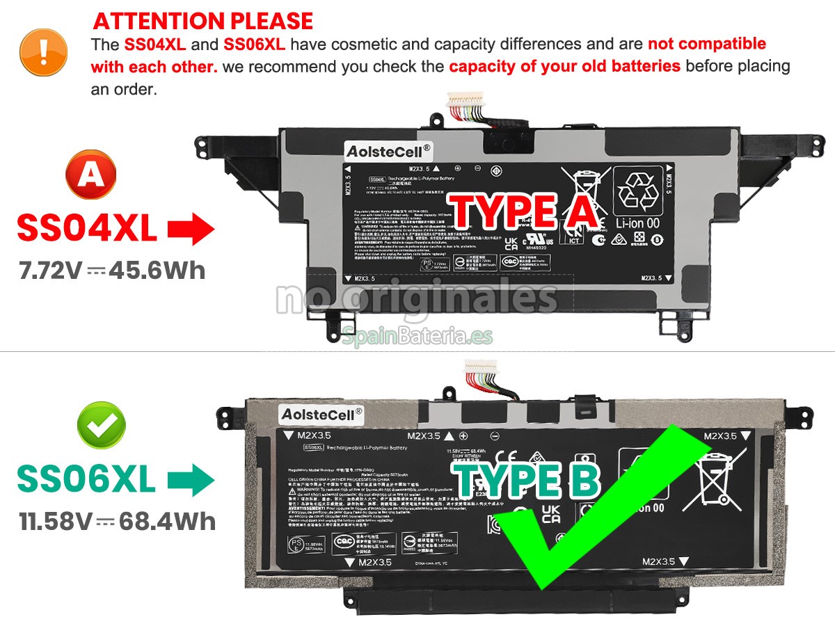 Por favor, compruebe el modelo y la forma de su batería original HP M73476-005. Asegúrese de que obtenga la batería correcta.