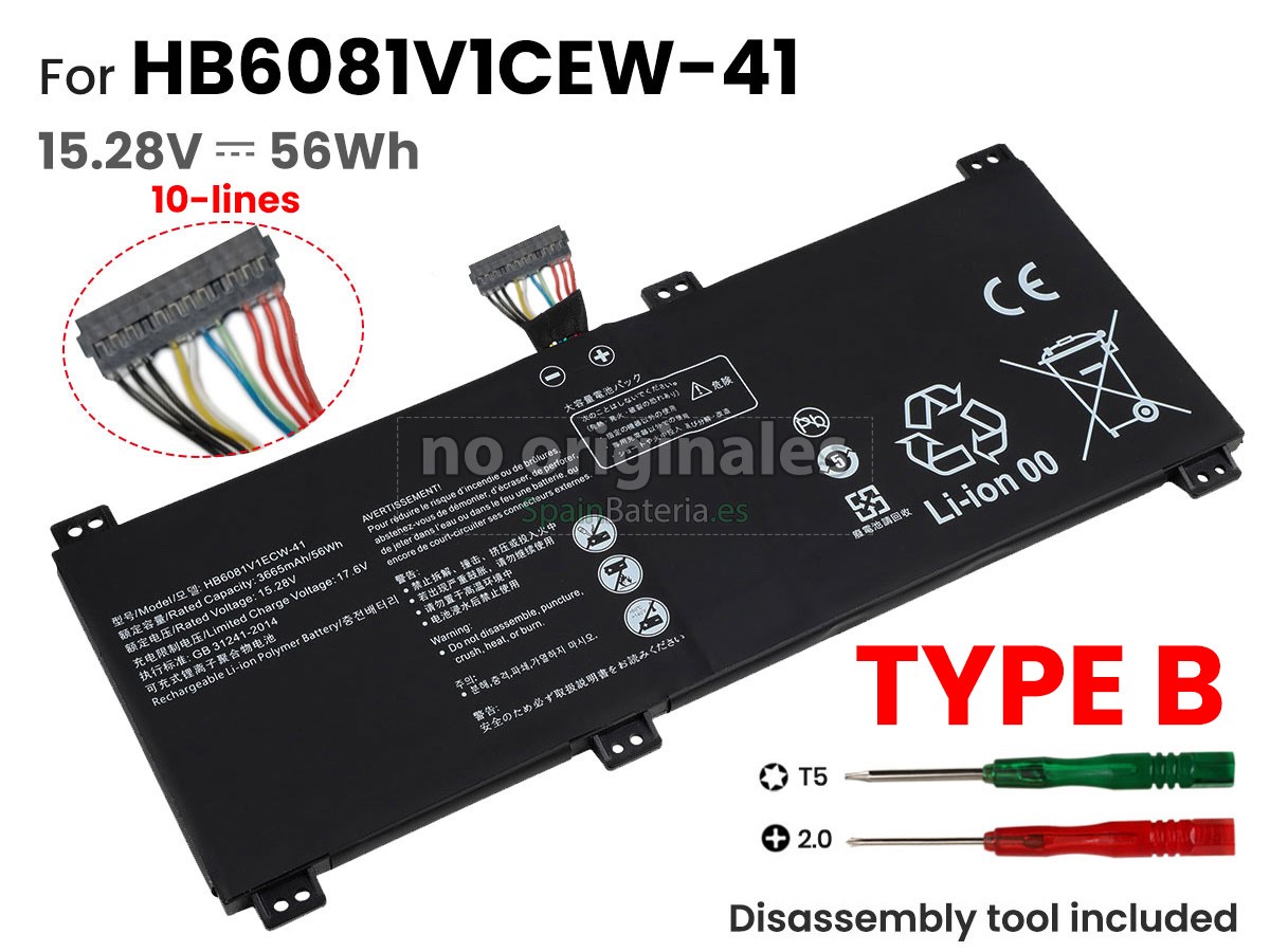 La larga duración de la batería Huawei HBB-WAH9HNL contiene células de batería de grado A para garantizar una mayor duración de la batería y más ciclos de carga. Entrega rápida, devoluciones fáciles y 100% de reembolso por 30 días. There are 2 types battery, before placing an order please open your laptop to check your old battery first, ensure it's the same as ours. Type B battery's connector is black and has 10 Lines.