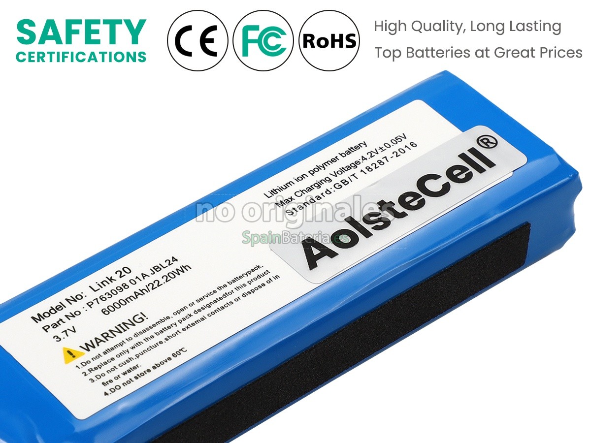 Vuelva a dar vida a su player original con nuestra batería de repuesto para JBL P763098-01A: hecha de materiales de alta calidad y células de grado superior, también cuenta con características de seguridad.