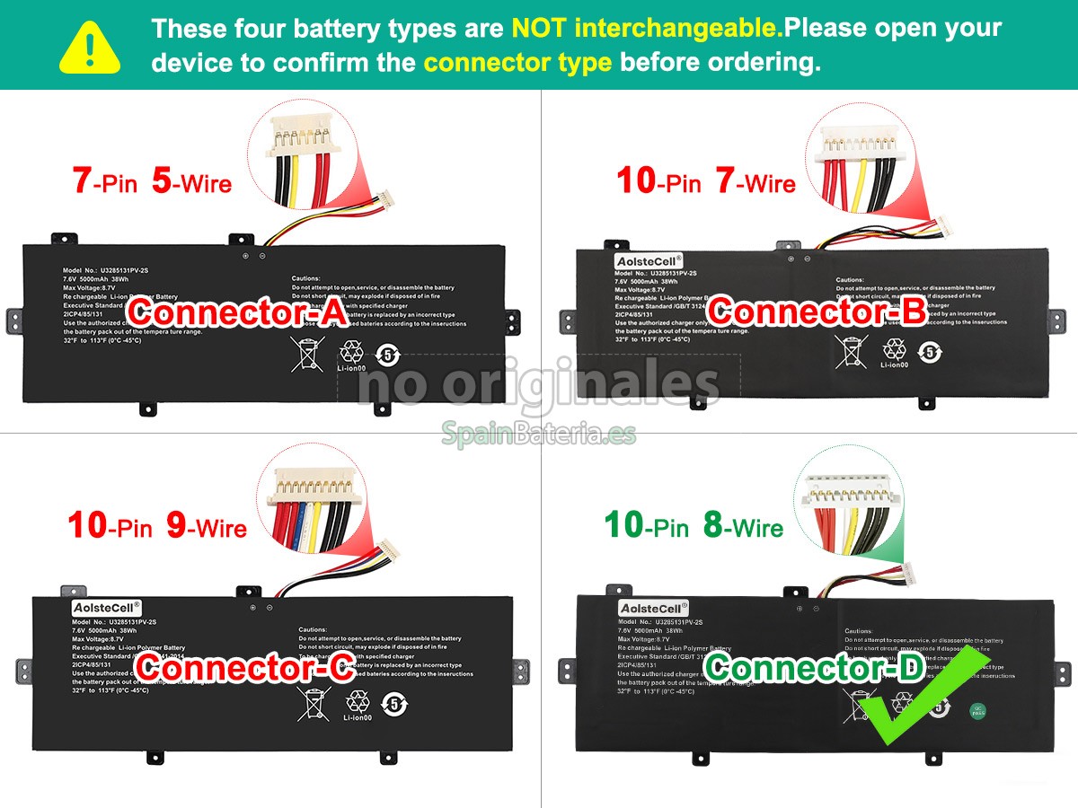 Por favor, compruebe el modelo y la forma de su batería original Jumper U3285131P-2S. Asegúrese de que obtenga la batería correcta.