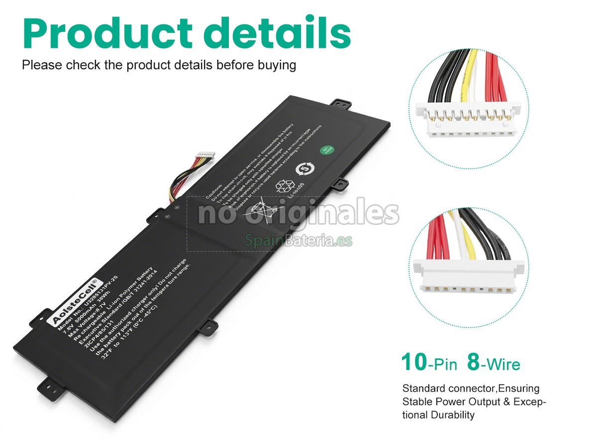 La larga duración de la batería Jumper U3285131P-2S contiene células de batería de grado A para garantizar una mayor duración de la batería y más ciclos de carga. Entrega rápida, devoluciones fáciles y 100% de reembolso por 30 días. Before placing an order, please open your computer to make sure that the battery U3285131PV-2S interface is 10 holes and 9 wires.