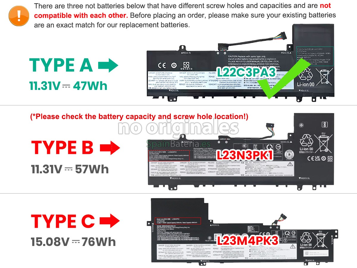 Por favor, compruebe el modelo y la forma de su batería original Lenovo IdeaPad SLIM 5 16AHP9-83DD0011SB. Asegúrese de que obtenga la batería correcta.