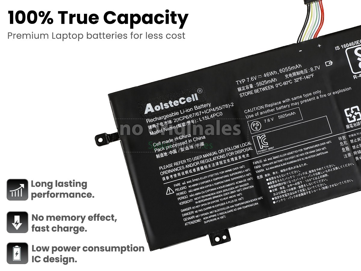 Por favor, compruebe el modelo y la forma de su batería original Lenovo L15M6PC0. Asegúrese de que obtenga la batería correcta.