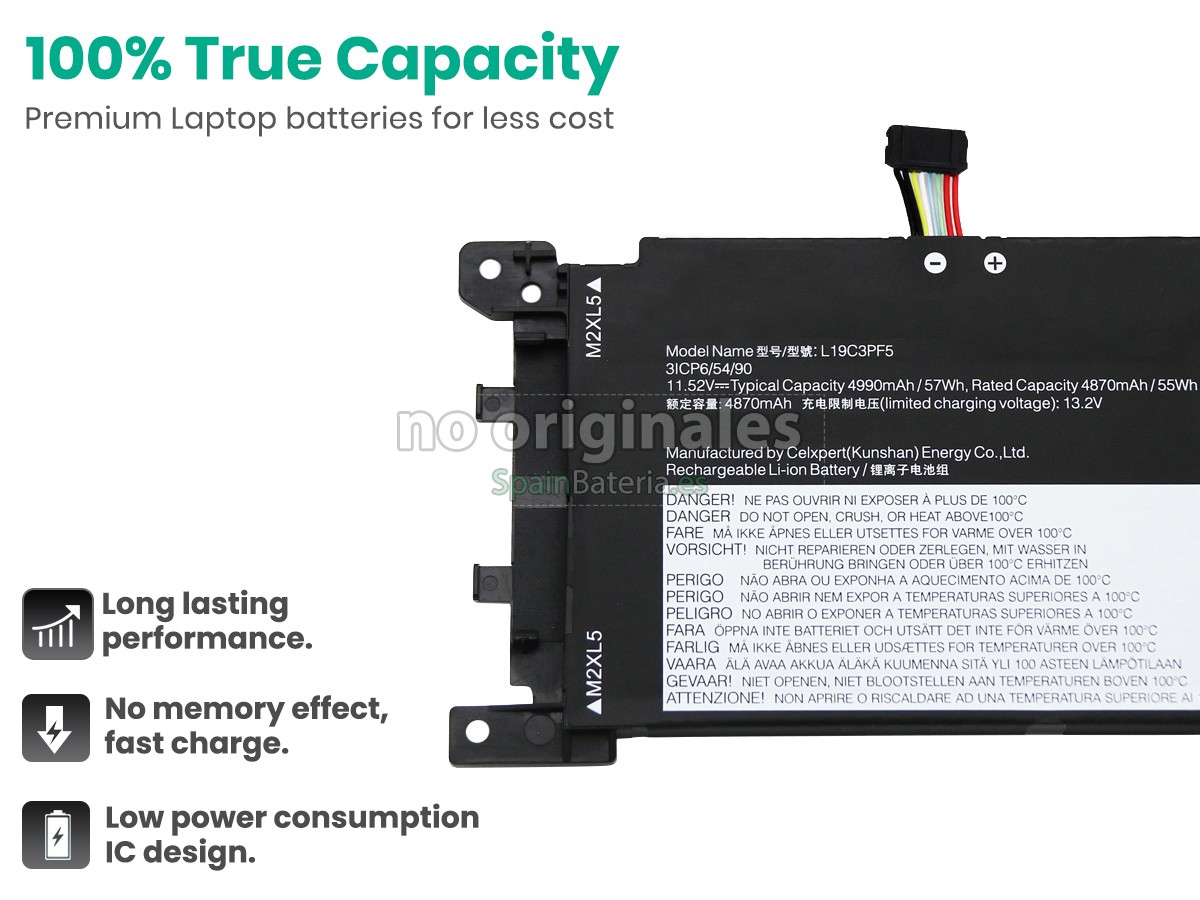 1. 100% OEM compatible con la batería Lenovo L19M4PF1 original.