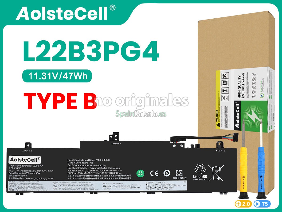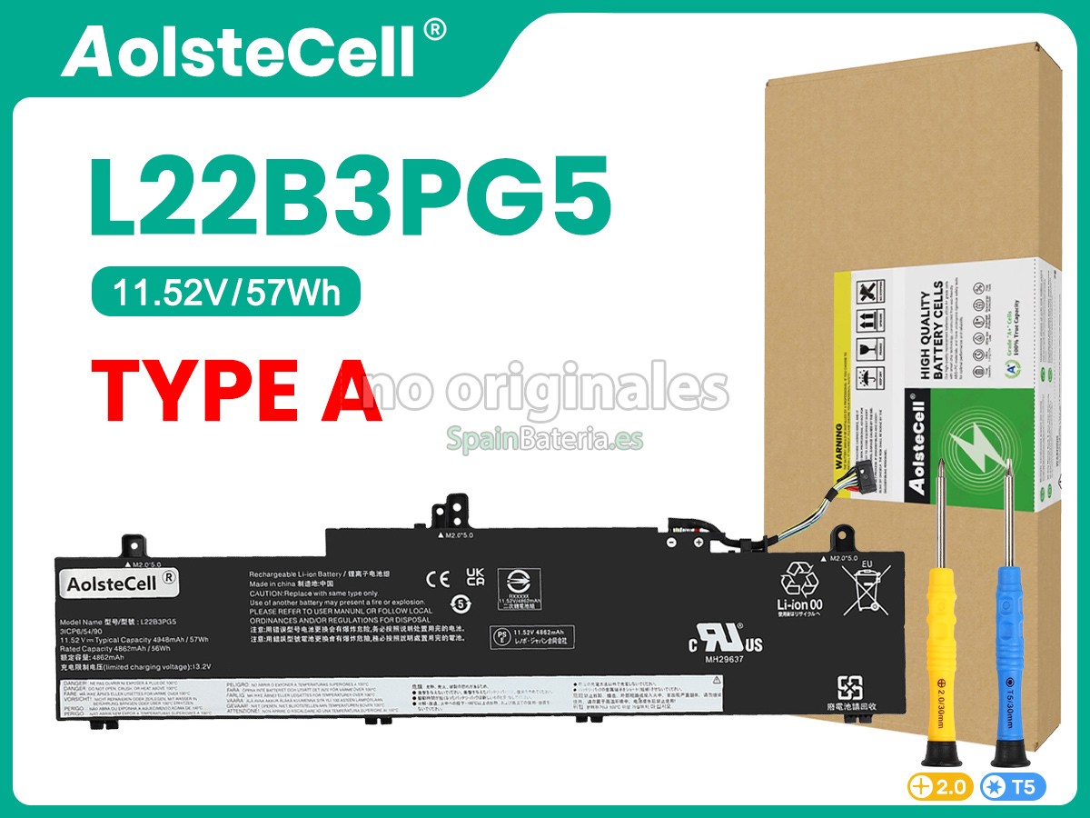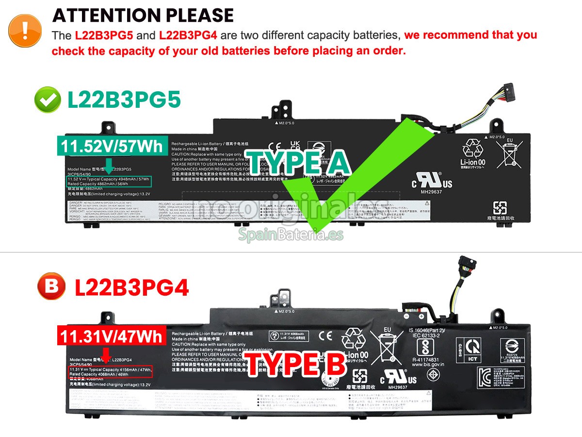 Por favor, compruebe el modelo y la forma de su batería original Lenovo L22B3PG4. Asegúrese de que obtenga la batería correcta.