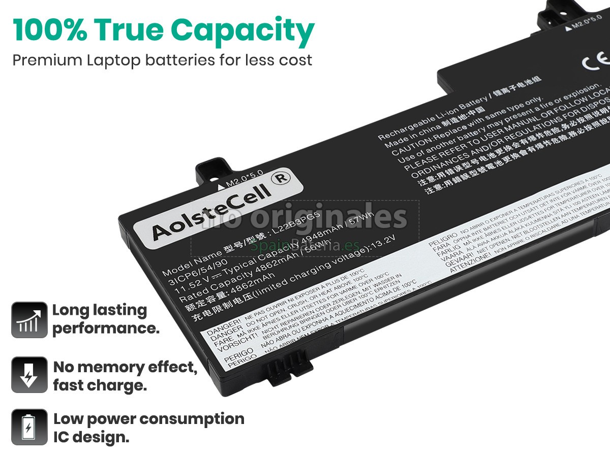 Elija la batería Lenovo L22B3PG4 correcta. En las mismas condiciones de uso, una batería de menor capacidad se acortará la vida más rápido que una batería de mayor capacidad porque debe cargarse más a menudo.