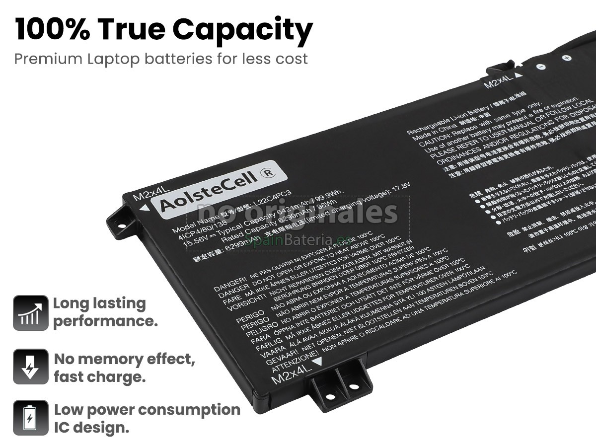 Por favor, compruebe el modelo y la forma de su batería original Lenovo L22D4PC3. Asegúrese de que obtenga la batería correcta.