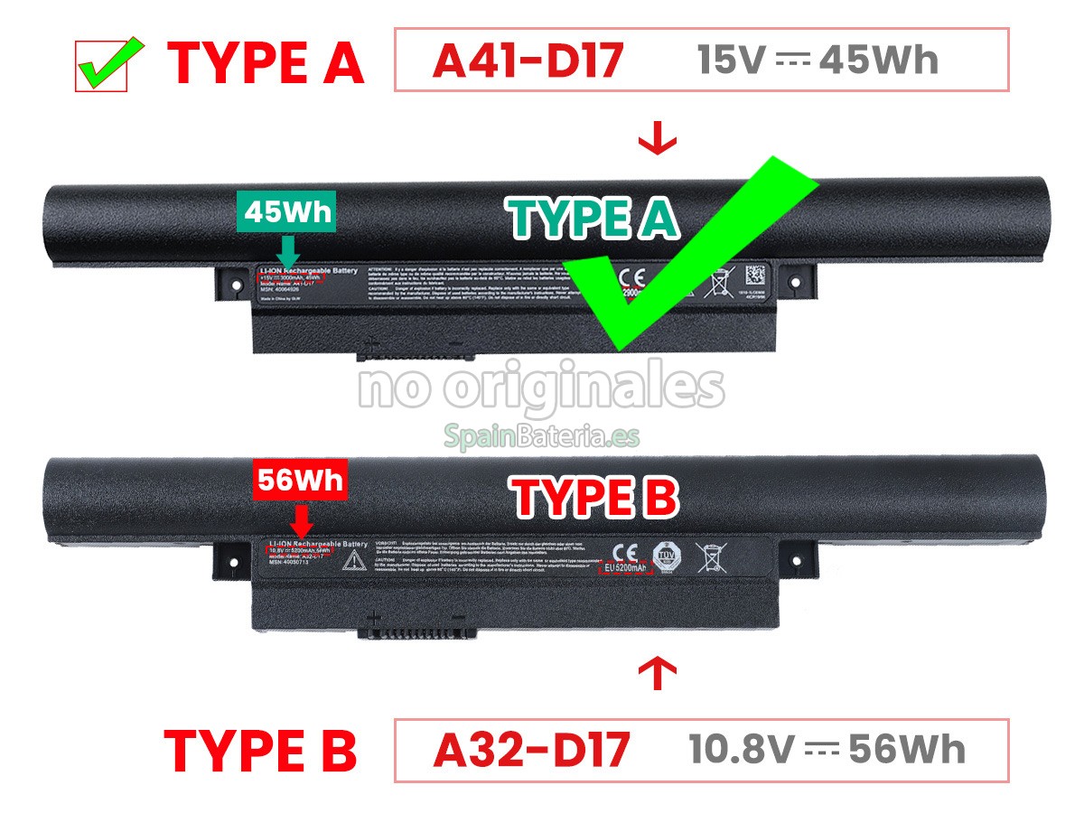 Por favor, compruebe el modelo y la forma de su batería original Medion MD99274. Asegúrese de que obtenga la batería correcta.