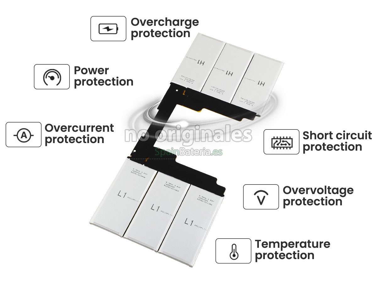 Cada batería contiene Funciones de Múltiples Protecciones Incorporadas para una Máxima Seguridad.